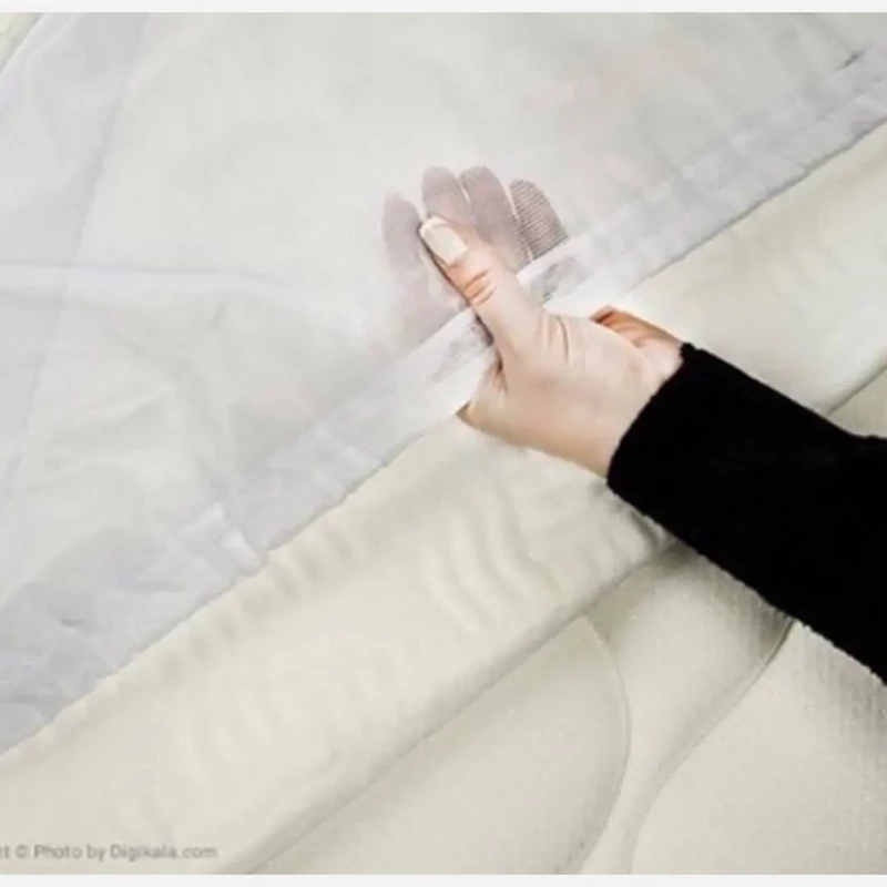 محافظ تشک ضدآب روی کار پارچه ضد حساسیت و لطیف و پشت کار کاملا ضد آب میباشد و تشک شما را از هر گونه عرق کردن و کثیفی محافظت میکند و به راحتی قابل شست شو هست و دورتا دور کار تور مقاوم میباشد که گردش هوا در تشک ایجاد شود