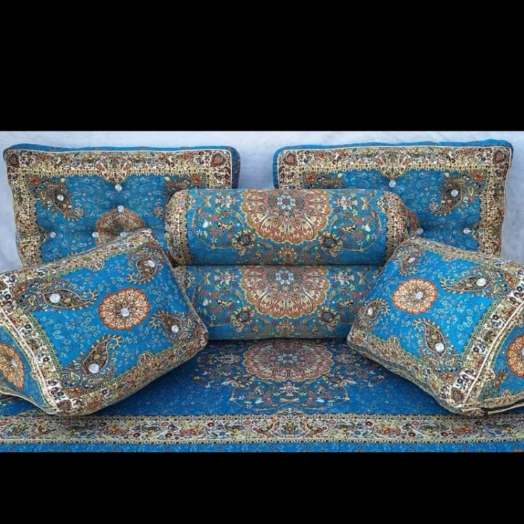سرویس 7تیکه شاه نشین شامل یک عدد تشک 70 در 2 دو عدد پشتی دو عددمتکالول دو عدد لمی پارچه ترمه درجه یک الیاف درجه یک
